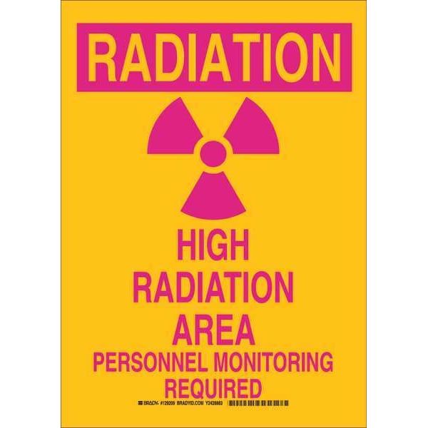 Hazard Sign, Sign Subject Matter Radiation and X-Ray, Height 14 in, Width 10 in, Sign Material Polyester, Sign Mounting Style Adhesive Surface, Header Radiation, Legend High Radiation Area Personnel Monitoring Required, Printed Language English, Sign Shape Rectangle