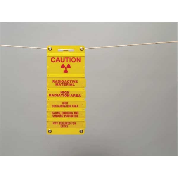 Danger Radiation Sign, Sign Subject Matter Radiation and X-Ray, Height 4 5/8 in, Width 8 in, Sign Material Plastic, Sign Mounting Style Surface, Header No Header, Legend Grave Danger Very High Radiation Area, Printed Language English, Sign Shape Rectangle