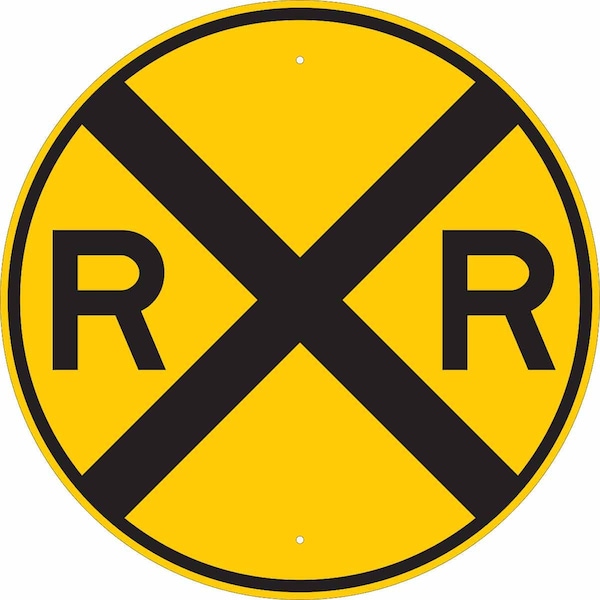 Railroad Sign, Height 30 in, Width 30 in, Sign Material Aluminum, Sign Mounting Style With Mounting Holes, Printed Language English, Sign Shape Circle