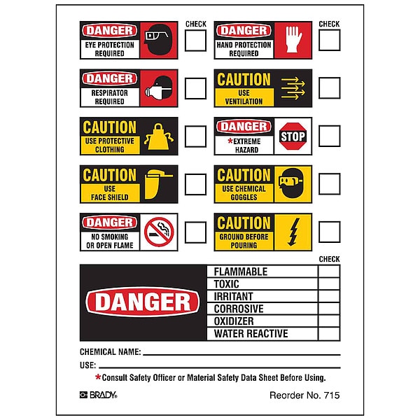 Right-To-Know Label, Adhesive Adhesive, Adhesive Material Acrylic, Adhesive Properties Permanent Adhesive, Background Color White, Hazard Communication Standard HMIG, Height 4 1/2 in, Kit Contents Not Applicable, Lamination Type Not Laminated, Language English, Material Paper, Material Properties Not Applicable, Maximum Service Temperature 149 Degrees F, Minimum Service Temperature -40 Degrees F, Mounting Type Adhesive, Preprinted Text Various Legend, Product Type Right-To-Know Label