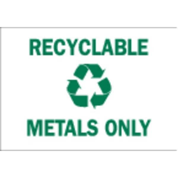 Recycling Sign, Sign Subject Matter Recycling, Height 10 In., Width 14 In., Sign Material Polyester, Sign Mounting Style Adhesive Surface, Header No Header, Legend Recyclable Aluminum Cans Only, Printed Language English, Sign Shape Rectangle
