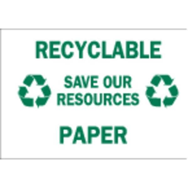 Recycling Sign, Sign Subject Matter Recycling, Height 10 In., Width 14 In., Sign Material Polyester, Sign Mounting Style Adhesive Surface, Header No Header, Legend Recyclable Save Our Resources Paper, Printed Language English, Sign Shape Rectangle