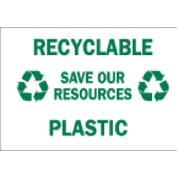 Recycling Sign, Sign Subject Matter Recycling, Height 10 In., Width 14 In., Sign Material Polyester, Sign Mounting Style Adhesive Surface, Header No Header, Legend Recyclable Save Our Resources Plastic, Printed Language English, Sign Shape Rectangle
