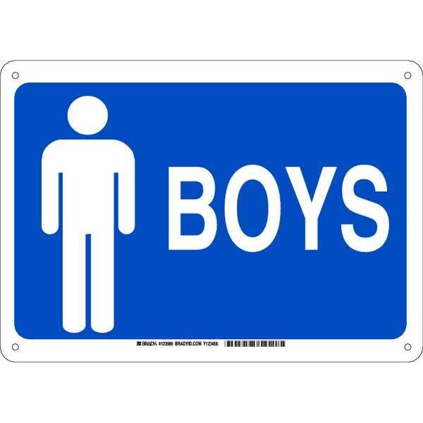 Restroom Sign, Sign Subject Matter Restrooms, Height 10 In., Width 14 In., Sign Material Aluminum, Sign Mounting Style With Mounting Holes, Header No Header, Legend Boys, Printed Language English, Sign Shape Rectangle