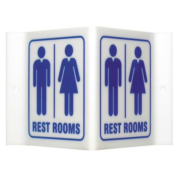 Restroom Sign, Sign Subject Matter Restrooms, Height 6 In., Width 9 In., Sign Material Acrylic, Sign Mounting Style Surface, Header No Header, Legend Restrooms, Printed Language English, Sign Shape Rectangle