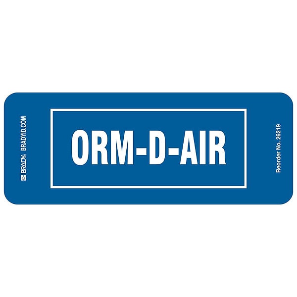 Right-To-Know Label, Adhesive Adhesive, Adhesive Material Acrylic, Adhesive Properties Permanent Adhesive, Background Color Blue, Hazard Communication Standard NFPA, Height 1 1/4 in, Kit Contents Not Applicable, Lamination Type Not Laminated, Language English, Material Paper, Material Properties Not Applicable, Maximum Service Temperature 149 Degrees F, Minimum Service Temperature -40 Degrees F, Mounting Type Adhesive, Preprinted Text Orm-D-Air, Product Type Right-To-Know Label