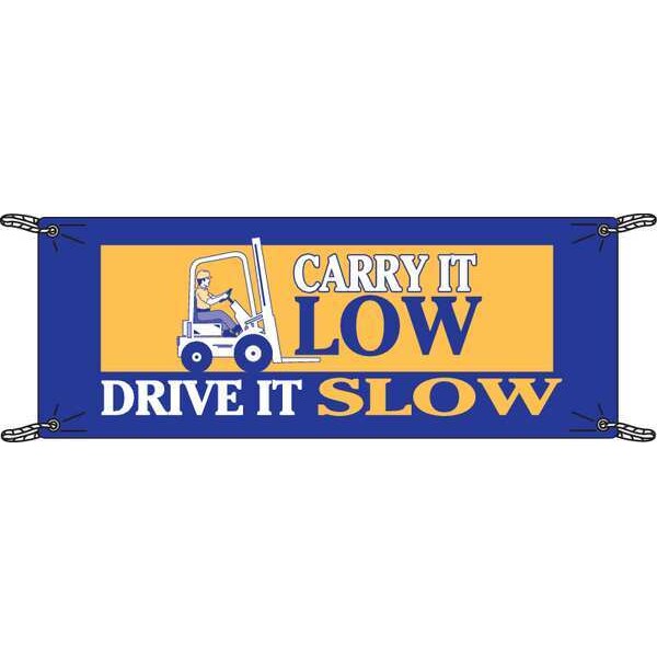 Safety Banner, Carry It Low - Drive It Slow, 48 in H x, 120 in W, Polyethylene