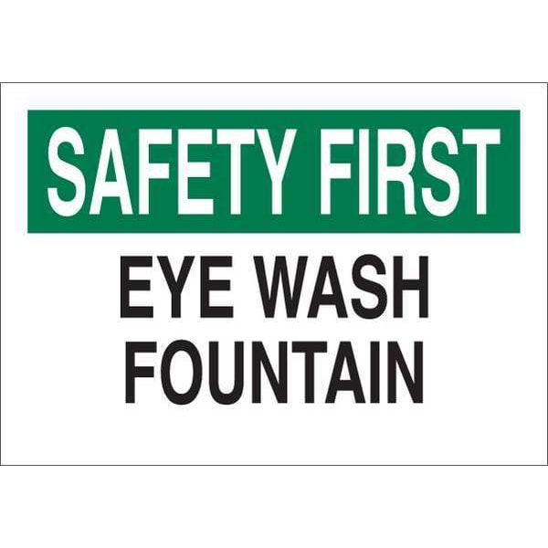 Eye Wash Sign, Sign Subject Matter Eyewash and Shower, Height 7 In., Width 10 In., Sign Material Aluminum, Sign Mounting Style With Mounting Holes, Header Safety First, Legend Eye Wash Fountain, Printed Language English, Sign Shape Rectangle
