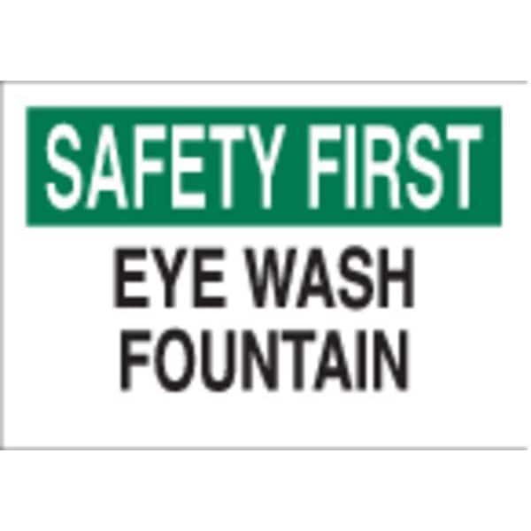 Eye Wash Sign, Sign Subject Matter Eyewash and Shower, Height 7 In., Width 10 In., Sign Material Polyester, Sign Mounting Style Adhesive Surface, Header Safety First, Legend Eye Wash Fountain, Printed Language English, Sign Shape Rectangle