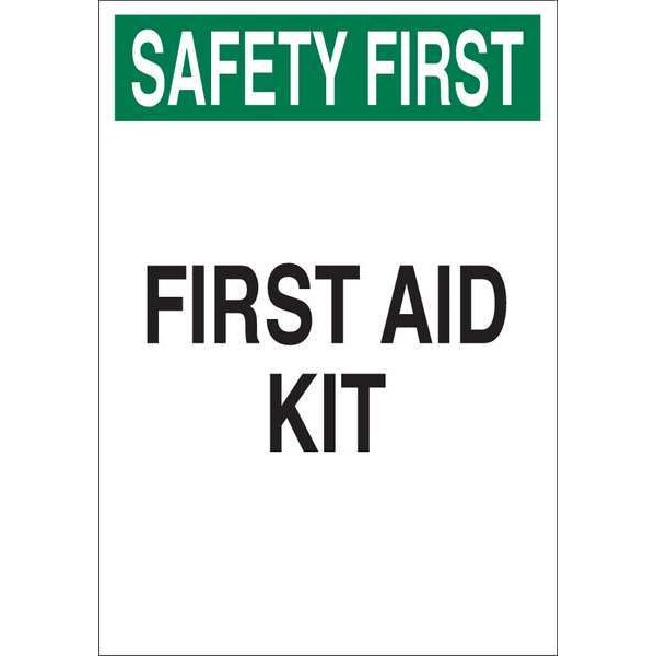 First Aid Sign, Sign Subject Matter First Aid, Height 14 In., Width 10 In., Sign Material Aluminum, Sign Mounting Style With Mounting Holes, Header Safety First, Legend First Aid Kit, Printed Language English, Sign Shape Rectangle
