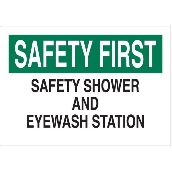 Safety Shower Sign, Sign Subject Matter Eyewash and Shower, Height 7 In., Width 10 In., Sign Material Polyester, Sign Mounting Style Adhesive Surface, Header Safety First, Legend Safety Shower And Eyewash Station, Printed Language English, Sign Shape Rectangle