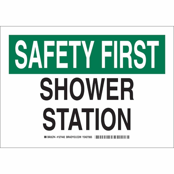 Safety Shower Sign, Sign Subject Matter Eyewash and Shower, Height 7 In., Width 10 In., Sign Material Polyester, Sign Mounting Style Adhesive Surface, Header Safety First, Legend Shower Station, Printed Language English, Sign Shape Rectangle