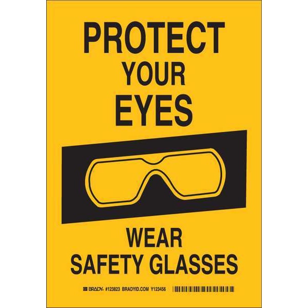 Safety Reminder Sign, Sign Subject Matter Personal Protection, Height 10 in, Width 7 in, Sign Material Polyester, Sign Mounting Style Adhesive Surface, Header No Header, Legend Protect Your Eyes Wear Safety Glasses, Printed Language English, Sign Shape Rectangle