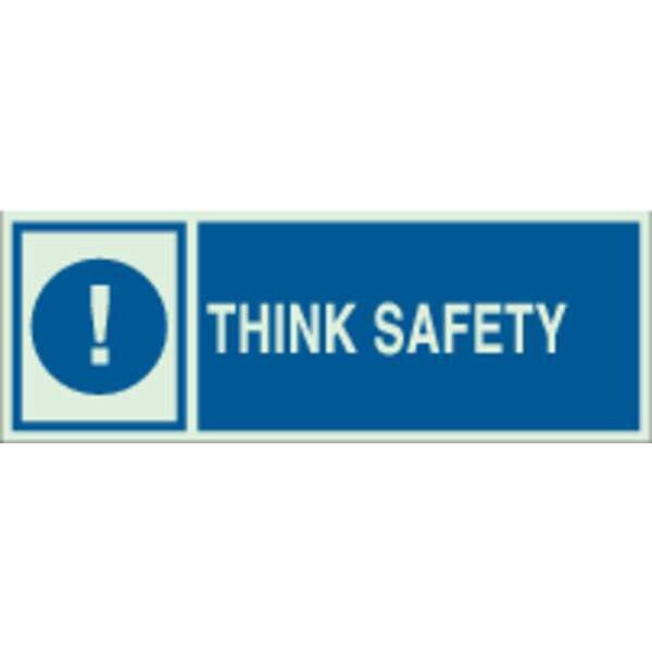 Safety Reminder Sign, Sign Subject Matter Safety Incentive and Motivational, Height 5 In., Width 14 In., Sign Material Plastic, Sign Mounting Style With Mounting Holes, Header No Header, Legend Think Safety, Printed Language English, Sign Shape Rectangle