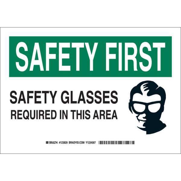 Safety Reminder Sign, Sign Subject Matter Personal Protection, Height 7 in, Width 10 in, Sign Material Polyester, Sign Mounting Style Adhesive Surface, Header Safety First, Legend Safety Glasses Required In This Area, Printed Language English, Sign Shape Rectangle