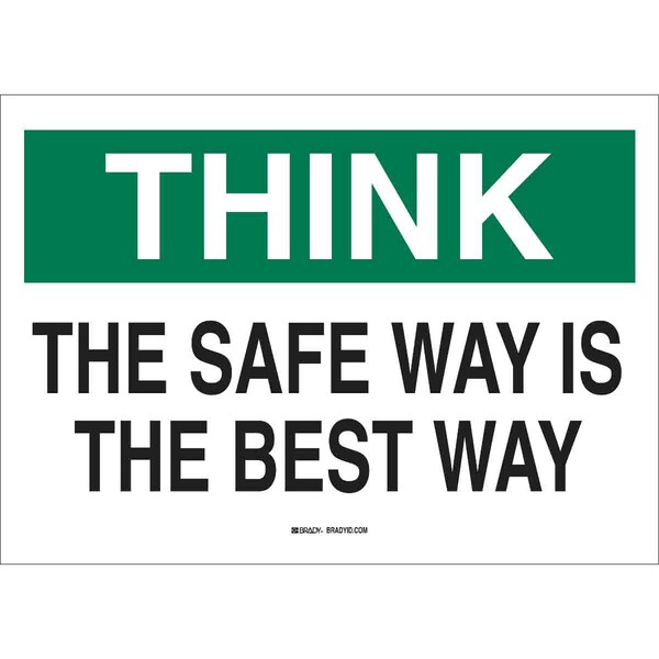 Safety Reminder Signs, Sign Subject Matter Safety Incentive and Motivational, Height 7 In., Width 10 In., Sign Material Polyester, Sign Mounting Style Adhesive Surface, Header Think, Legend The Safe Way Is The Best Way, Printed Language English, Sign Shape Rectangle