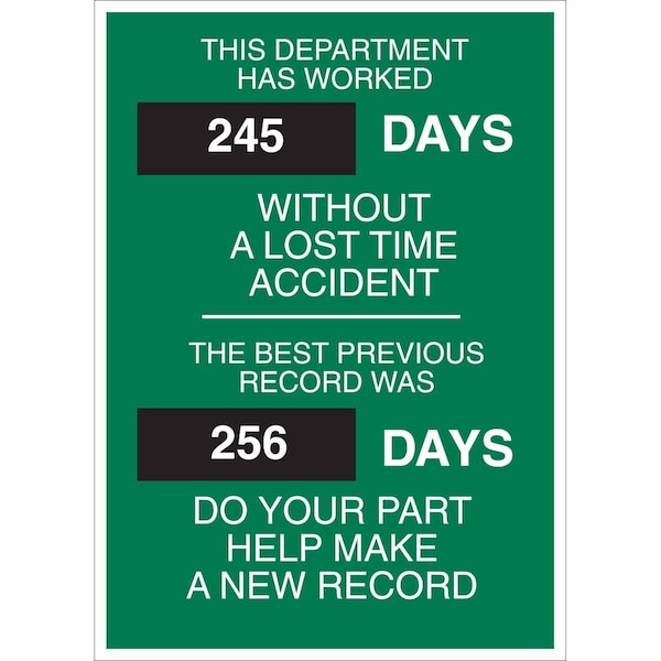 This Department Has Worked ___ Days Without A Lost Time Accident The Best Previous Record Was ____ Days Do Your Part Help Make A New Record