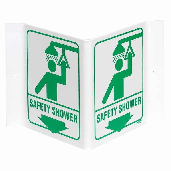 Safety Shower Sign, Sign Subject Matter Eyewash and Shower, Height 6 In., Width 9 In., Sign Material Acrylic, Sign Mounting Style With Mounting Holes, Header No Header, Legend Safety Shower, Printed Language English, Sign Shape Rectangle