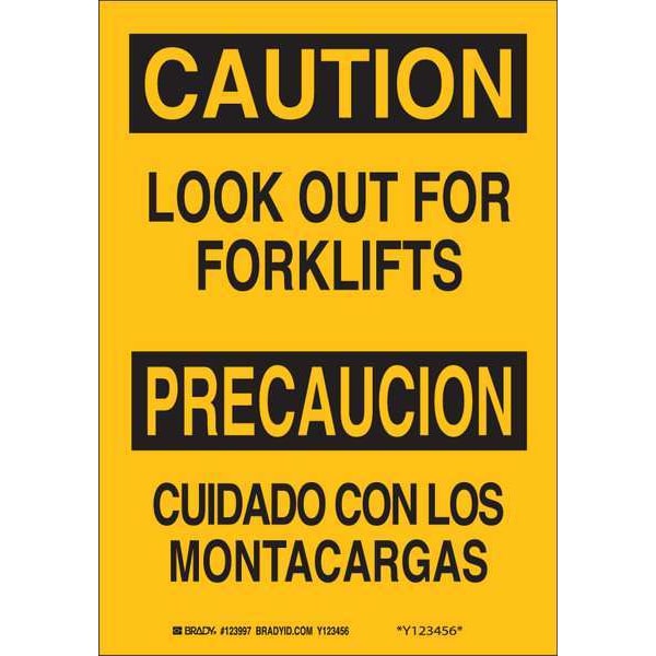 Safety Sign, Sign Subject Matter Lift Truck Traffic, Height 10 In., Width 7 In., Sign Material Polyester, Header Caution/Precaucion, Legend Look Out For Forklifts/Cuidado Con Los Montacargas, Printed Language English, Spanish, Sign Shape Rectangle