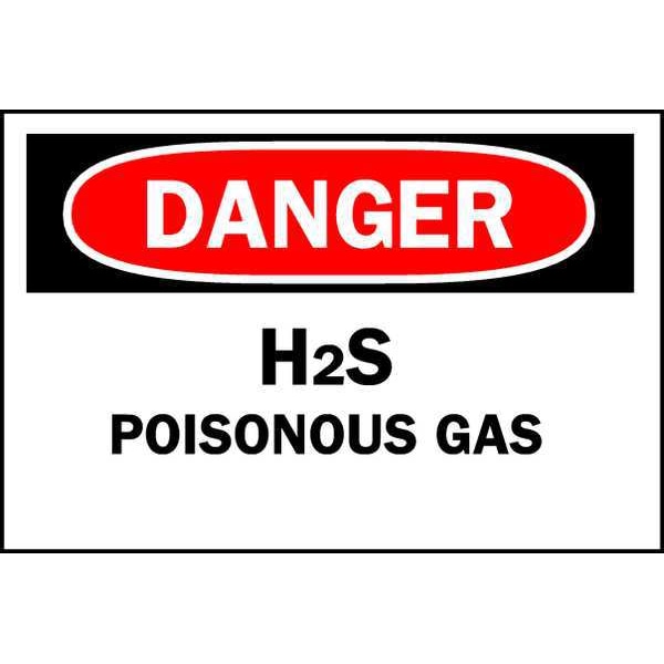 Safety Sign, Sign Subject Matter Chemical, Gas or Hazardous Materials, Height 10 in, Width 14 in, Sign Material Plastic, Sign Mounting Style With Mounting Holes, Header Danger, Legend H2S Poisonous Gas, Printed Language English, Sign Shape Rectangle