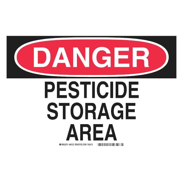 Safety Sign, Sign Subject Matter Pesticide, Height 10 in, Width 14 in, Sign Material Aluminum, Sign Mounting Style With Mounting Holes, Header Danger, Legend Pesticide Storage Area, Printed Language English, Sign Shape Rectangle