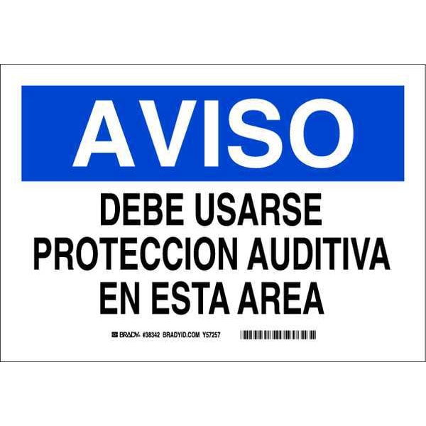 Safety Sign, Sign Subject Matter Personal Protection, Height 10 in, Width 14 in, Sign Material Aluminum, Sign Mounting Style With Mounting Holes, Header Aviso, Legend Debe Usarse Proteccion Auditiva En Esta Area, Printed Language Spanish, Sign Shape Rectangle
