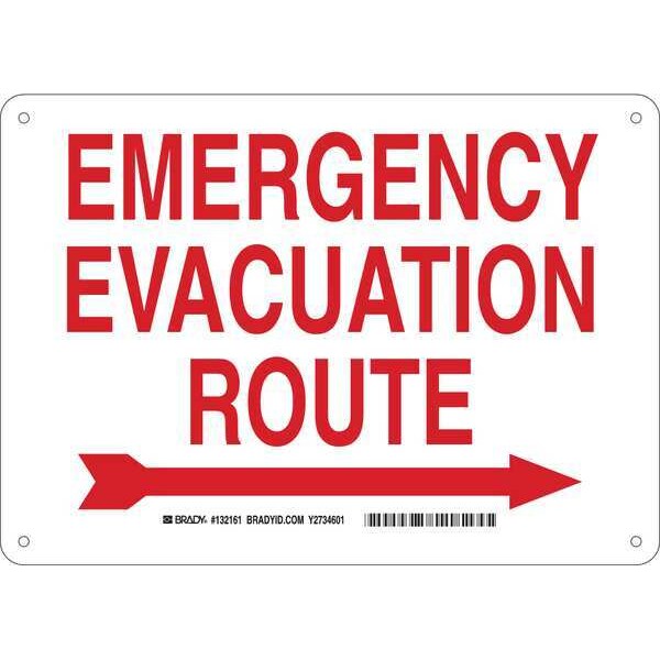Safety Sign, Sign Subject Matter Evacuation, Assembly or Shelter, Height 10 in, Width 14 in, Sign Material Plastic, Sign Mounting Style With Mounting Holes, Header No Header, Legend Emergency Evacuation Route, Printed Language English, Sign Shape Rectangle