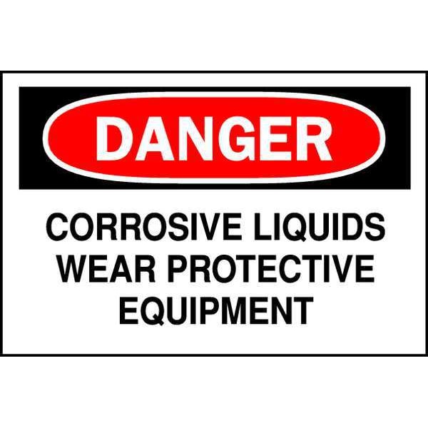 Safety Sign, Sign Subject Matter Personal Protection, Height 10 in, Width 14 in, Sign Material Plastic, Sign Mounting Style With Mounting Holes, Header Danger, Legend Corrosive Liquids Wear Protective Equipment, Printed Language English, Sign Shape Rectangle