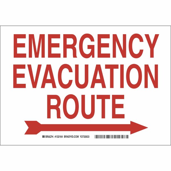 Safety Sign, Sign Subject Matter Evacuation, Assembly or Shelter, Height 10 in, Width 14 in, Sign Material Polyester, Sign Mounting Style Adhesive Surface, Header No Header, Legend Emergency Evacuation Route, Printed Language English, Sign Shape Rectangle