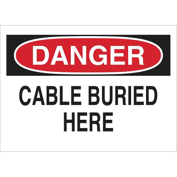 Safety Sign, Sign Subject Matter Electrical Hazard, Height 10 in, Width 14 in, Sign Material Polyester, Sign Mounting Style Adhesive Surface, Header Danger, Legend Cable Buried Here, Printed Language English, Sign Shape Rectangle