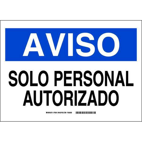 Safety Sign, Sign Subject Matter Authorized Personnel and Restricted Access, Height 10 in, Width 14 in, Sign Material Polyester, Sign Mounting Style Adhesive Surface, Header Aviso, Legend Solo Personal Autorizado, Printed Language Spanish, Sign Shape Rectangle