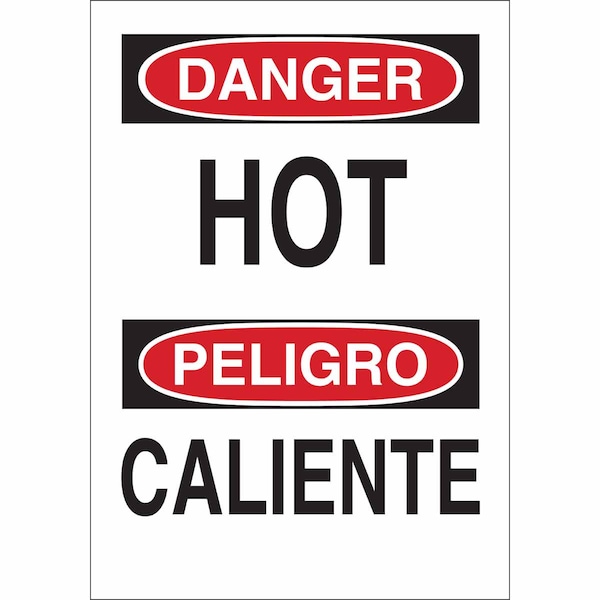 Safety Sign, Sign Subject Matter Hot, Height 14 in, Width 10 in, Sign Material Plastic, Sign Mounting Style With Mounting Holes, Header Danger/Peligro, Legend Hot/Caliente, Printed Language English, Spanish, Sign Shape Rectangle
