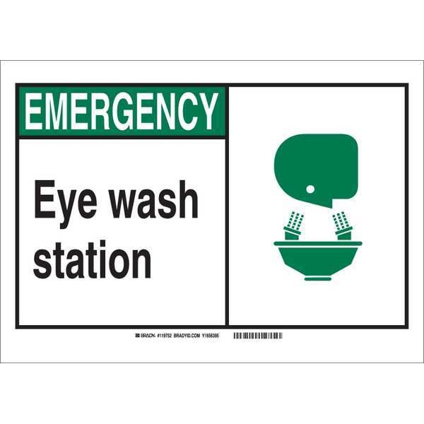 Safety Sign, Sign Subject Matter Eyewash and Shower, Height 5 in, Width 7 in, Sign Material Polyester, Sign Mounting Style Adhesive Surface, Header Emergency, Legend Eye Wash Station, Printed Language English, Sign Shape Rectangle