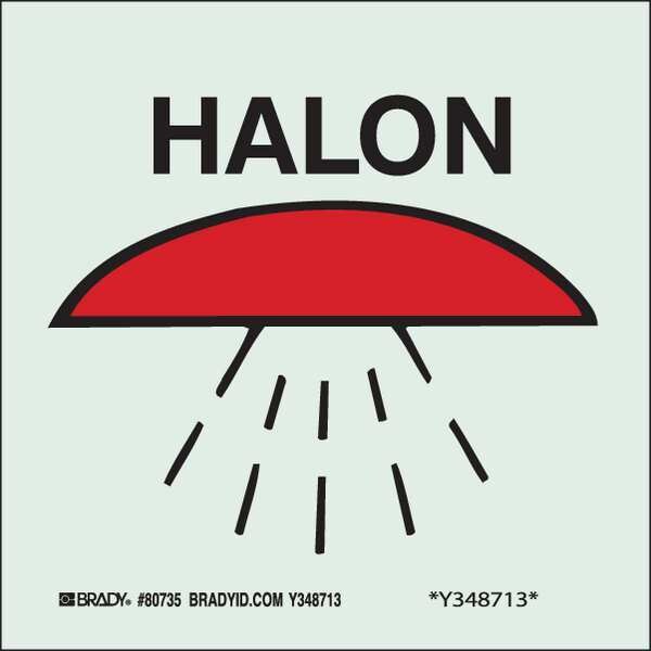 Safety Sign, Sign Subject Matter Fire Equipment, Height 6 in, Width 6 in, Sign Material Polyester, Sign Mounting Style Adhesive Surface, Header No Header, Legend Halon, Printed Language English, Sign Shape Square