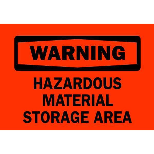 Safety Sign, Sign Subject Matter Chemical, Gas or Hazardous Materials, Height 7 in, Width 10 in, Sign Material Aluminum, Sign Mounting Style With Mounting Holes, Header Warning, Legend Hazardous Material Storage Area, Printed Language English, Sign Shape Rectangle
