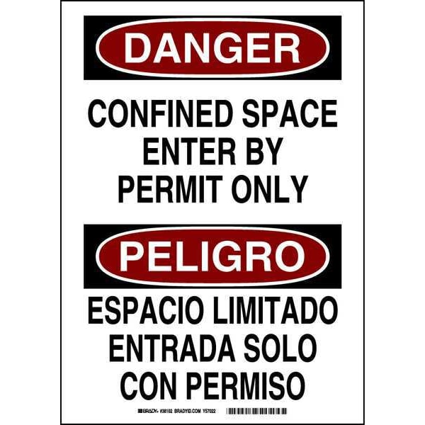Safety Sign, Sign Subject Matter Confined Space, Height 7 in, Width 10 in, Sign Material Aluminum, Sign Mounting Style With Mounting Holes, Header Danger/Peligro, Legend Confined Space Enter By Permit Only/Espacio Limitado Entrada Solo Con Permiso, Printed Language English, Spanish, Sign Shape Rectangle