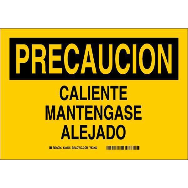 Safety Sign, Sign Subject Matter Hot, Height 7 in, Width 10 in, Sign Material Aluminum, Header Precaucion, Legend Caliente Mantengase Alejado, Printed Language Spanish, Sign Shape Rectangle