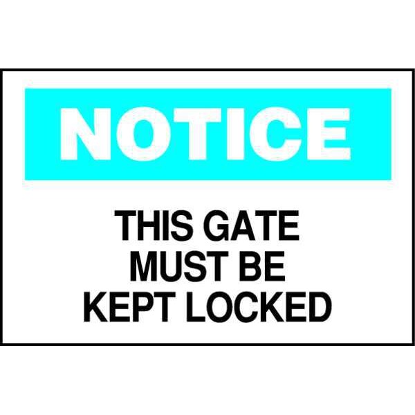 Safety Sign, Sign Subject Matter Lockout Tagout, Height 7 in, Width 10 in, Sign Material Plastic, Sign Mounting Style With Mounting Holes, Header Notice, Legend This Gate Must Be Kept Locked, Printed Language English, Sign Shape Rectangle