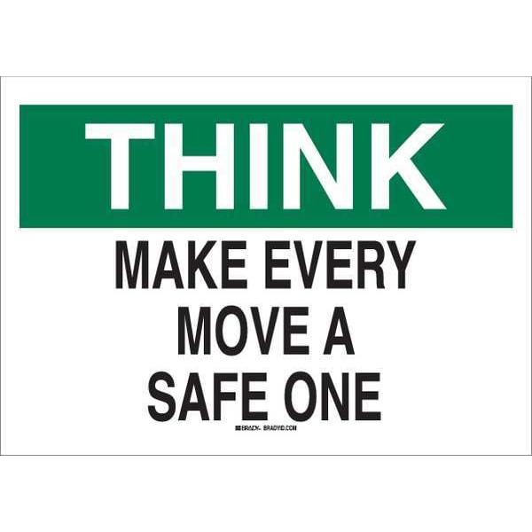 Safety Slogan Sign, Sign Subject Matter Safety Incentive and Motivational, Height 10 In., Width 14 In., Sign Material Polyester, Sign Mounting Style Adhesive Surface, Header Think, Legend Make Every Move A Safe One, Printed Language English, Sign Shape Rectangle