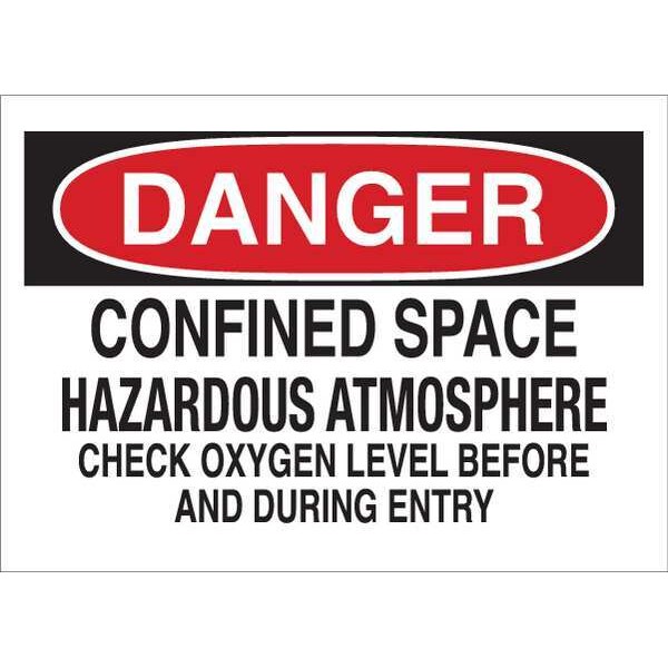 Security Sign, Sign Subject Matter Confined Space, Height 7 in, Width 10 in, Sign Material Fiberglass, Sign Mounting Style With Mounting Holes, Header Danger, Legend Confined Space Hazardous Atmosphere Check Oxygen Level Before And During Entry, Printed Language English, Sign Shape Rectangle