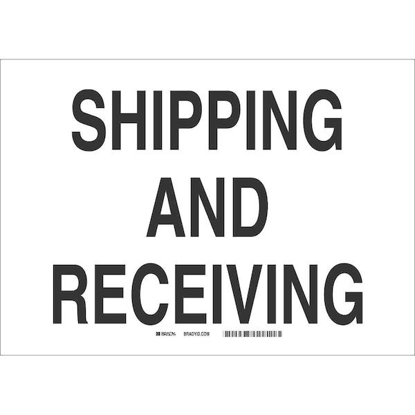 Facility Sign, Sign Subject Matter Shipping and Receiving, Height 10 In., Width 14 In., Sign Material Plastic, Sign Mounting Style With Mounting Holes, Header No Header, Legend Shipping And Receiving, Printed Language English, Sign Shape Rectangle