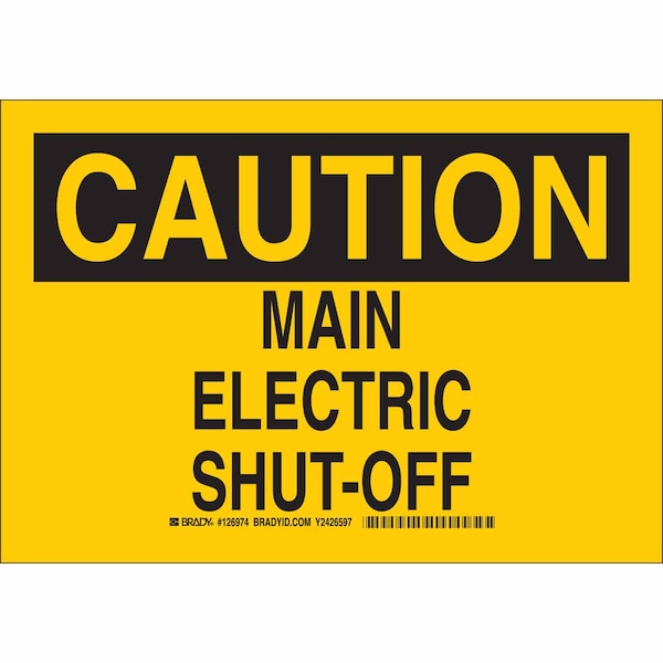 Caution Sign, Sign Subject Matter Electrical Hazard, Height 10 in, Width 14 in, Sign Material Polyester, Header Caution, Legend Main Electric Shut-Off, Printed Language English, Sign Shape Rectangle