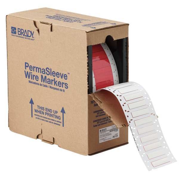 Sleeve Label, Adhesive Material Not Applicable, Adhesive Properties Non-Adhesive, Material Properties Self-Extinguishing, Label Material Polyolefin, Label Color White, Label Finish Matte, Label Height 2 in, Label Width 1/4 in, Number of Labels Included 1,000, Compatible Mfr Part Number R6406, Compatible Grainger Part Number 30DA32, Recommended Ribbon R6406, Printer Series Compatibility BBP11, BBP12, BBP72, i7100, THT, Maximum Wire Diameter 0.22 in, Minimum Wire Diameter 0.13 in