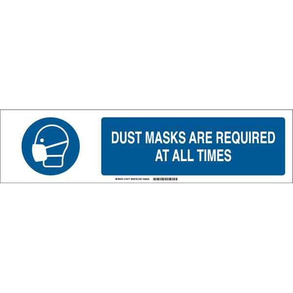 Slider Insert, Horizontal Rectangle, English, Sign Format ANSI/OSHA Format, Sign Legend Dust Masks Are Required At All Times, Sign Legend Background Color White, Sign Legend Text Color Blue, Sign Legend Style Symbol and Text, Height 6 in, Width 23 7/8 in