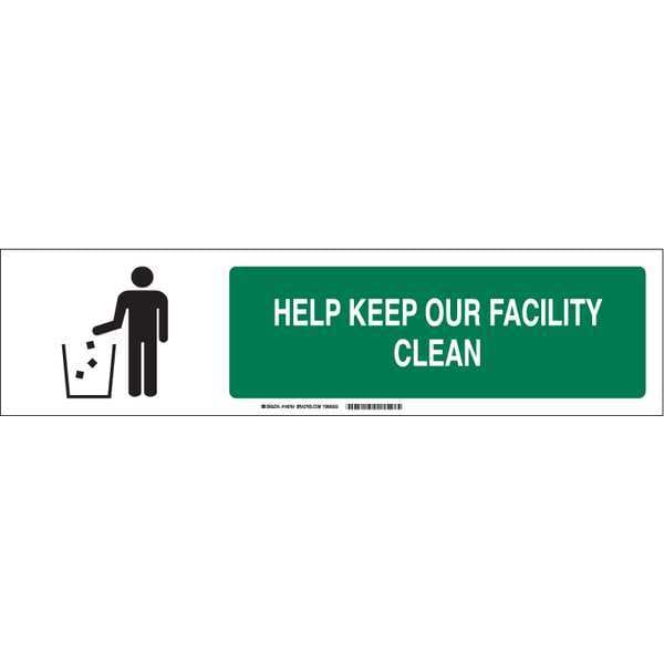 Slider Insert, Horizontal Rectangle, English, Sign Format ANSI/OSHA Format, Sign Legend Help Keep Our Facility Clean, Sign Legend Background Color White, Sign Legend Text Color Black, Green, Sign Legend Style Symbol and Text, Height 6 in, Width 23 7/8 in