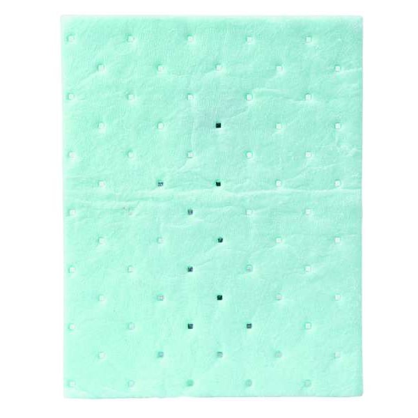 Sorbent Pad, 11 gal, 7 1/2 in x 10 in, Harsh Chemicals, Green, Polypropylene