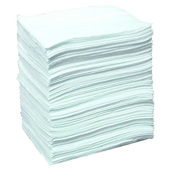 Product Type Sorbent Pad, Fluids Absorbed Oils, For Use With Chemical or Metal Type Oil Only, Size 15 in x 19 in, Volume Absorbed Per Pad 33 oz, Volume Absorbed per Pkg. 26 gal, Color/Pattern White, Material Polypropylene, Number of Layers 1, Perforated Not Perforated, Perforated Size Not Perforated, Package Quantity 100
