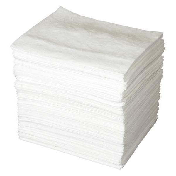 Sorbent Pad, 51 gal, 15 in x 19 in, Oil, White, Polypropylene