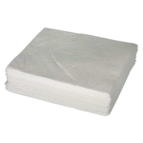 Product Type Sorbent Pad, Fluids Absorbed Oils, For Use With Chemical or Metal Type Oil Based Liquids Only, Size 15 in x 19 in, Volume Absorbed Per Pad 23 oz, Volume Absorbed per Pkg. 9 gal, Color/Pattern White, Material Polypropylene, Number of Layers 1, Perforated Not Perforated, Perforated Size Not Perforated, Package Quantity 50