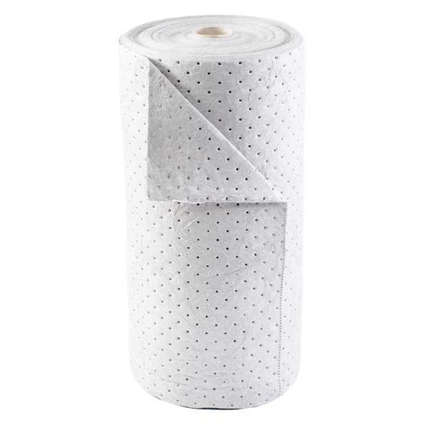 Product Type Sorbent Roll, Fluids Absorbed Oils, For Use With Chemical or Metal Type Oil Only, Size 30 in x 150 ft, Volume Absorbed per Pkg. 38 gal, Color/Pattern White, Material Polypropylene, Number of Layers 1, Perforated Perforated, Perforated Size 30 in x 30 in